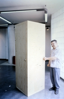 acciones * / Periodo 2006-2010 / Periodo 2001-2005 / Periodo 1996-2000 / Periodo 1991-1995 / Periodo 1984-1990 / A Volveratrás / "Las 4 estaciones" 17/10/1989 Acción-artefacto. Cubículo rectangular con puerta en cada uno de sus lados.