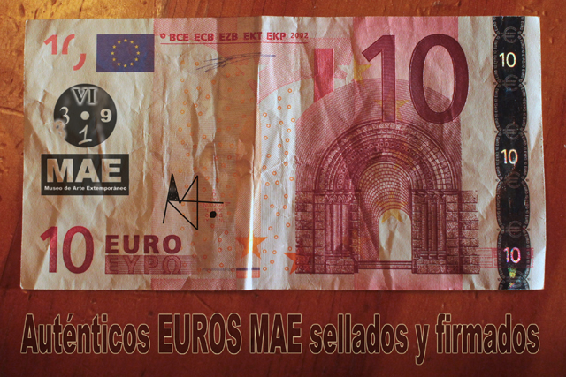 El CAPITAL TAL CUAL es una maniobra artístico-económica con la que el Museo de Arte Extemporáneo lanza su propia burbuja especulativa. ¡Y usted puede participar!. Los Euros MAE son billetes de curso legal firmados y sellados a mano por miembros del MAE.